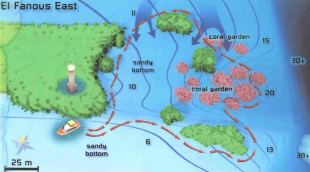 The coral gardens form an extensive labyrinth near a reef located between the islands of Small and Big Giftun. This spot is ideal for drift diving, allowing divers to explore the intricate coral formations extensively and navigate freely between and through them.