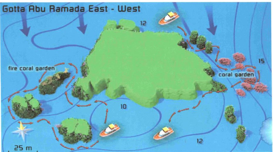 Heading towards North Abu Ramada, divers may encounter a stronger current, offering the prospect of a diving “heaven” or, if the current is particularly robust, a more challenging experience akin to “hell.” Each of these dive sites contributes to the island’s allure, providing a diverse range of underwater landscapes and marine life encounters.