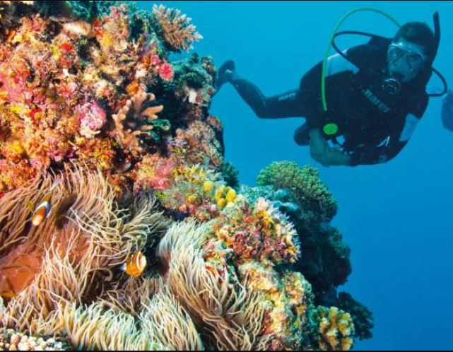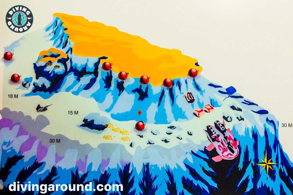 This site is characterized by its unique underwater landscape, featuring coral formations and diverse marine life.